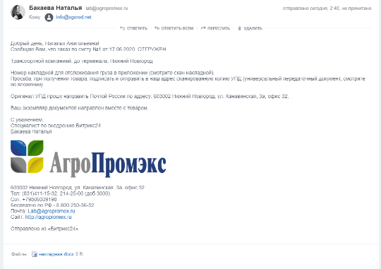Если более суток сделка зависла на стадии, клиент не перезвонил и не ответил, то система автоматически высылает на e-mail письмо: