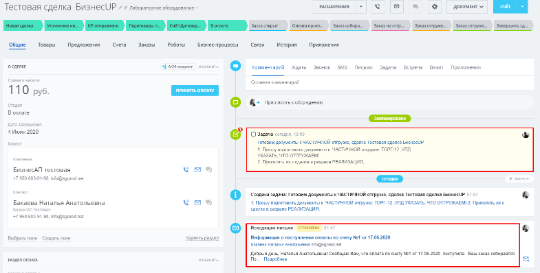Кроме того, ответственному по сделке, сразу, при переходе на данный этап, назначается дело "Перезвонить клиенту "Убедиться, что КП получено"