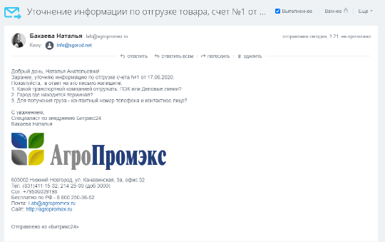 Автоматический переход на следующую стадию "ПЕРЕГОВОРЫ по КП", если клиент отреагировал на сделку (отправил в ответ e-mail или перезвонил*)